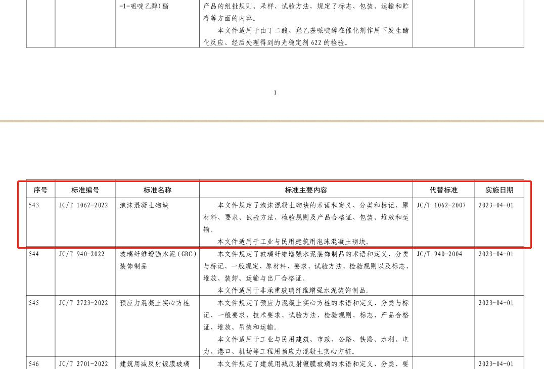 - 工信(xìn)部批準(zhǔn)《JC/T 1062-2022 泡沫混(hun)凝土砌(qì)塊》新…