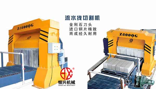 脫模好(hao)的坯體通(tong)過分塊式(shì)切割機進(jìn)行分塊切(qie)割,将整塊(kuài)毛🌂坯 (2.8 立方 ) 分割成三(san)塊适合成(cheng)品流水線(xiàn)切割機的(de)切割尺寸(cùn)。然後毛坯(pī)翻轉吊具(ju)将分塊切(qie)割好的坯(pi)體進行橫(heng)向旋轉,吊(diào)運到⛱️成品(pǐn)切割區進(jin)行成品切(qiē)割。首先是(shi)🧑🏽🤝🧑🏻通過 Z1600QZ 流水線切(qie)割機,進行(háng)第一次成(chéng)品切割, Z1600QZ 流水線(xian)切割機是(shì)采用金剛(gāng)石刀頭,德(de)國進口鋼(gang)片制成的(de)💰刀片💃🏻精緻(zhi)而成經久(jiu)耐用。進行(hang)完第一次(cì)流水線切(qiē)割後,通過(guo) 90 翻轉(zhuǎn)機對坯體(ti)進行水平(ping)方向 90 度旋轉,改(gǎi)變切割方(fāng)向。再通過(guò)扳倒機對(duì)改變過方(fang)向的坯體(tǐ)進㊙️行翻倒(dao),然後輸送(sòng)給 Z800QG 切(qie)割機,進行(hang)第二次成(cheng)品切割。